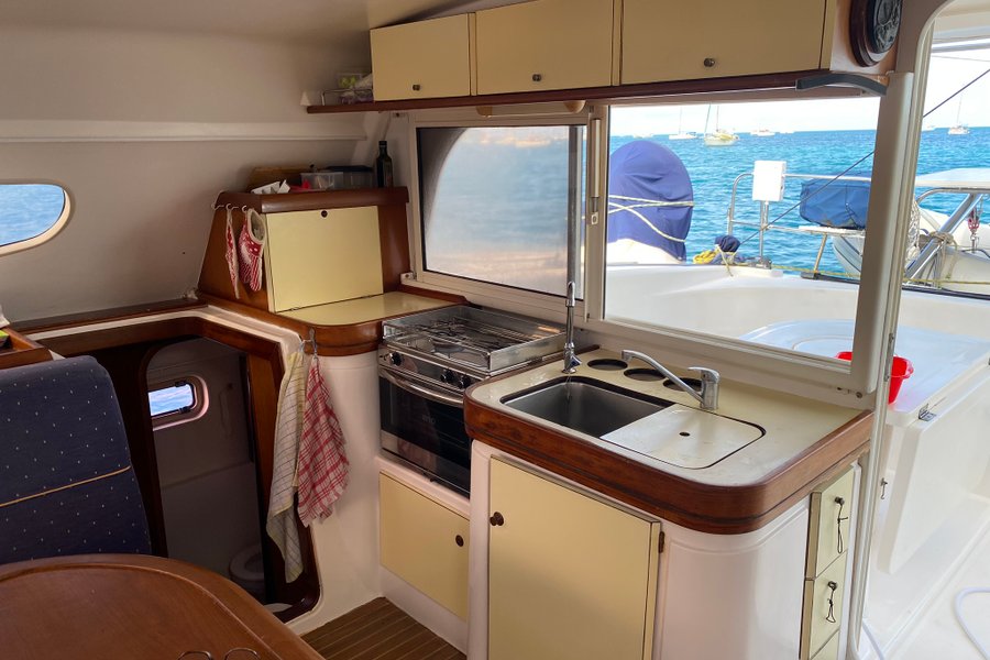 Embarquez pour un séjour unique à bord d’un catamaran de 12 mètres, un modèle stable et confortable, idéal pour découvrir la mer en toute sérénité. Le bateau est amarré dans les eaux turquoise de Sainte-Anne, en Martinique, offrant un accès direct à la baignade dans une eau à 28°C. À l’intérieur……