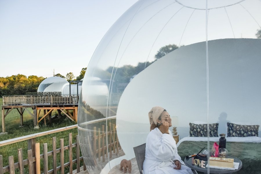 Envie de calme et de romantisme pour savourer chaque instant ? Offrez-vous une escapade insolite au cœur des Causses du Quercy, dans le Lot !☺️ Vous allez adorer : la superbe vue sur la nature environnante et un ciel étoiléCette bulle cosy et parfaitement équipée v……