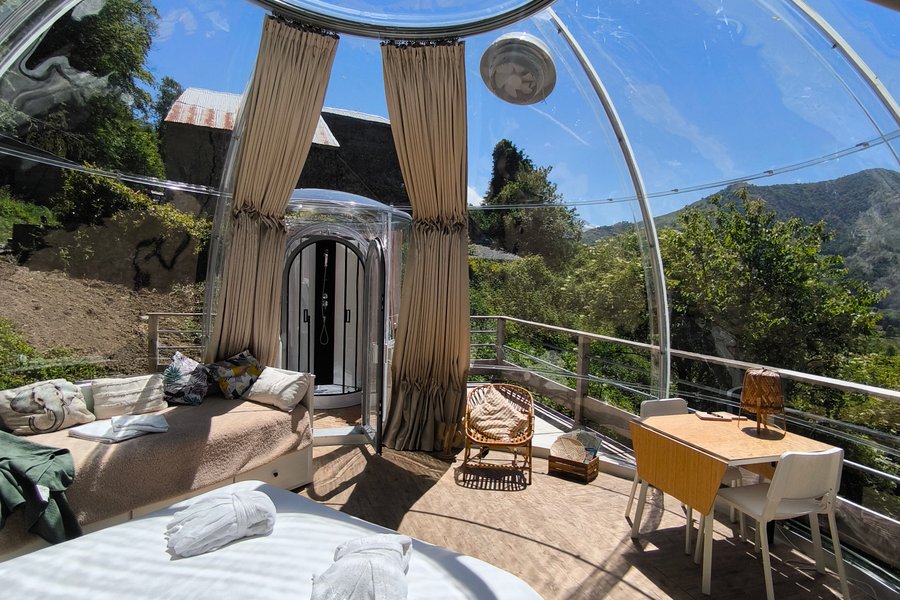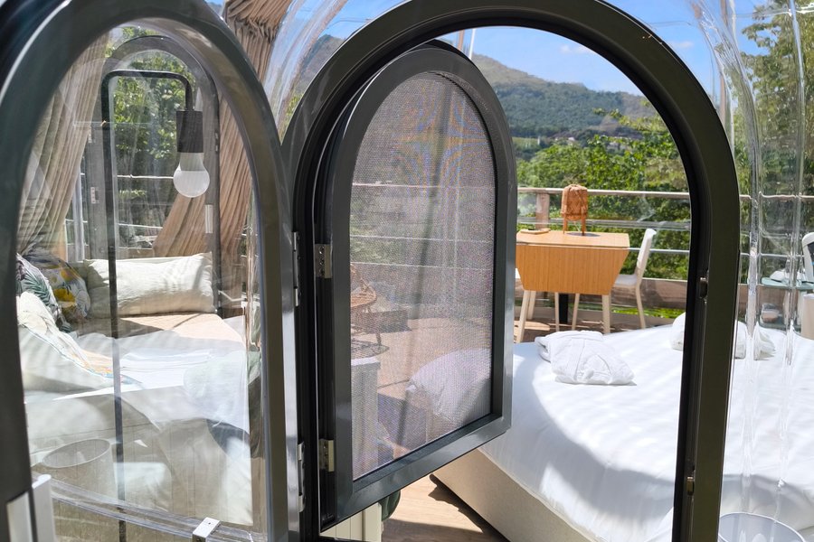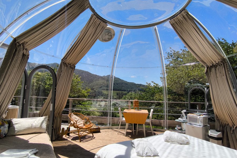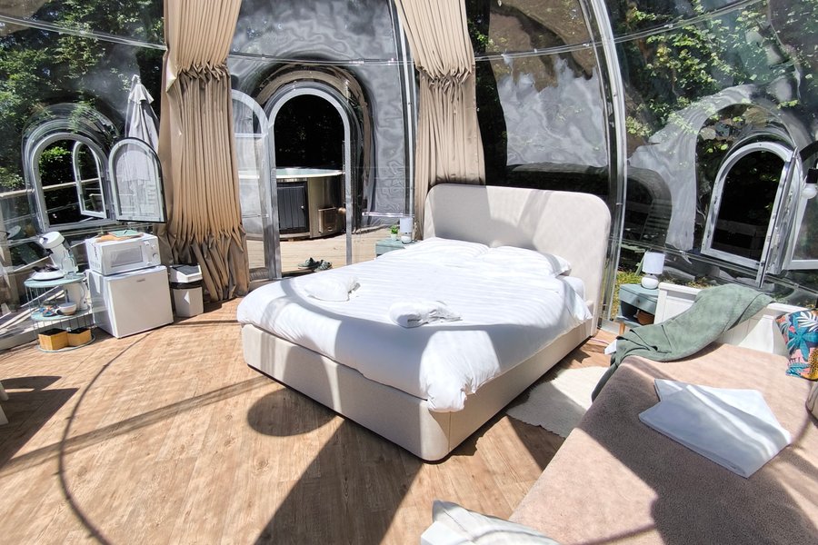 Doté de couchages modulables, ce dôme peut accueillir de 2 à 4 personnes, idéal pour les couples, les familles ou les amis.