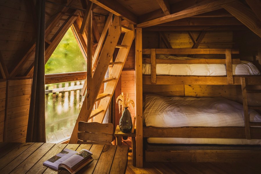 Si vous n'arrivez pas à vous décider entre une cabane dans les arbres et une cabane flottante, la cabane Royale sera parfaite pour vous.