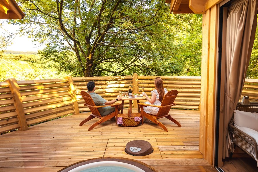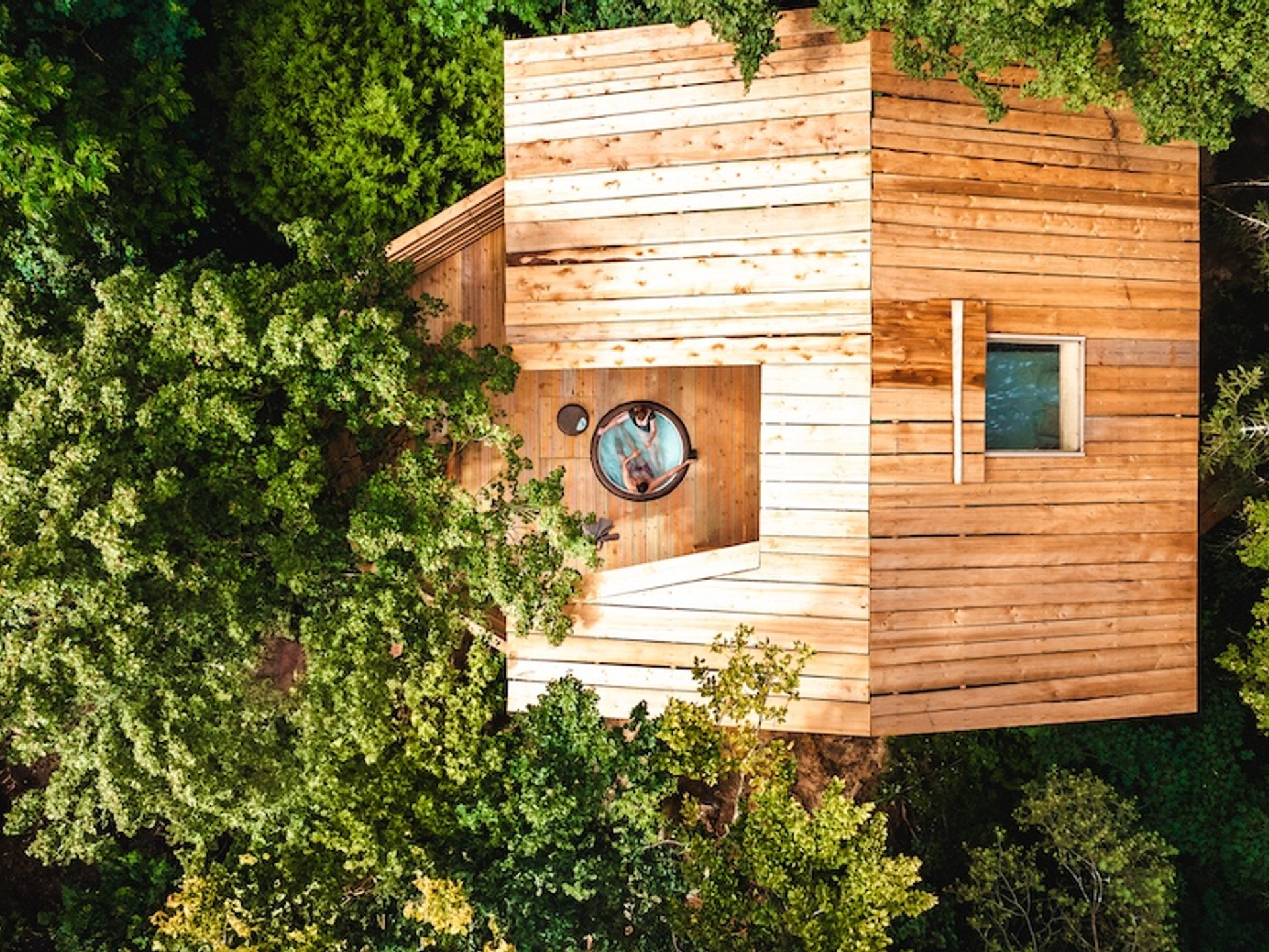 Détendez-vous dans votre jacuzzi privatif chauffé à 38°C tout en haut des arbres .