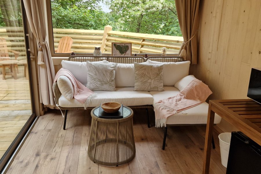 A la lisière des bois, la cabane "Spa Cocoon Romantique" vous offre une jolie vue sur les champs depuis la terrasse.