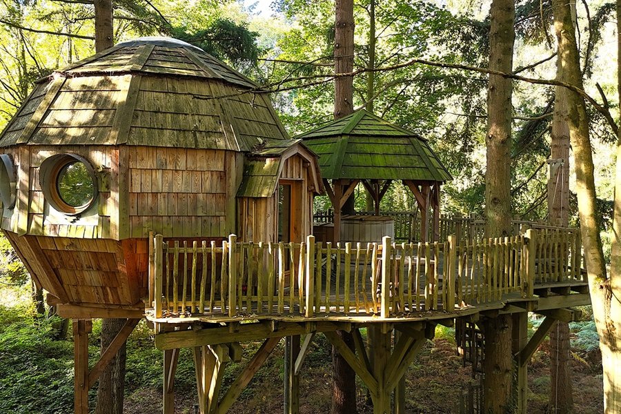 Perchée à 6 mètres de hauteur, dans les branches d'un chêne, la cabane Spa Cachette est faite pour accueillir 2 à 3 personnes !