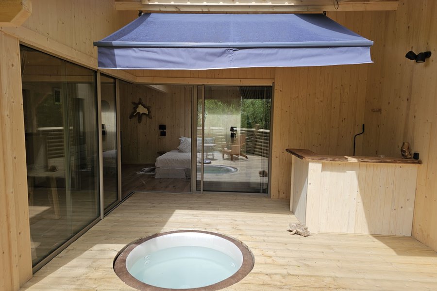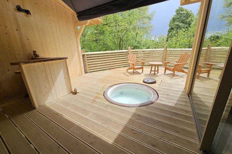 Détendez-vous dans votre jacuzzi privatif chauffé à 38°C tout en haut des arbres .