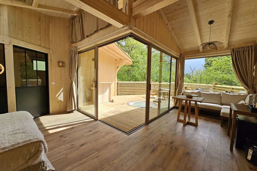 La Cabane "Spa Cocoon d'Amour" est un véritable nid douillet pour les amoureux de nature.