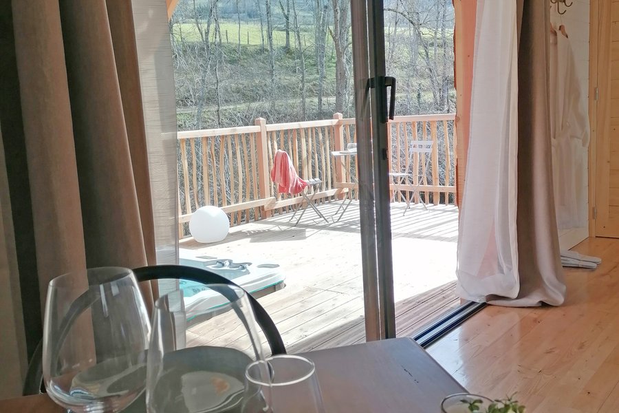 De la terrasse vous pourrez admirer la rivière, profitez du spa et du sauna ……