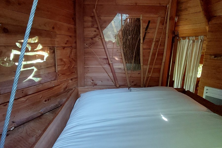 Accessible par un escalier en colimaçon puis par un petit pont de singe de 8 mètres, elle est isolée pour assurer intimité et tranquillité à ses occupants.