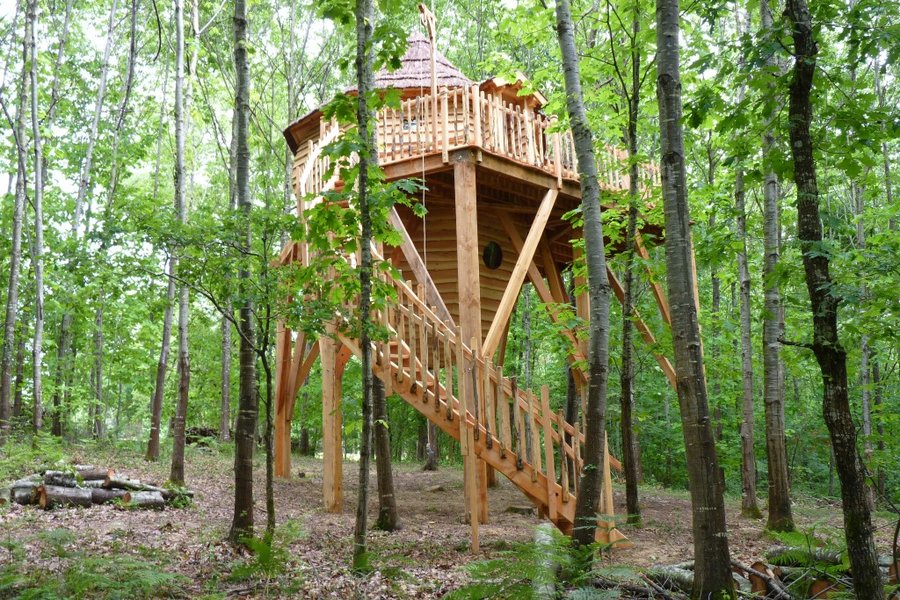 Perchée à 6 mètres de hauteur, en plein cœur d'une forêt de chênes d'Amérique, la Cabane Diane est idéale pour un séjour en famille.