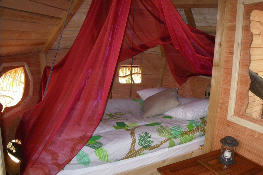 Cabane BerceauLa cabane du "Berceau" est destiné aux véritables aventuriers en quête de sensations, pour y accéder, un parcours sportif « exotique » vous attend : escalier-cocotier, pont de singe vertigineux et échelle de papou.