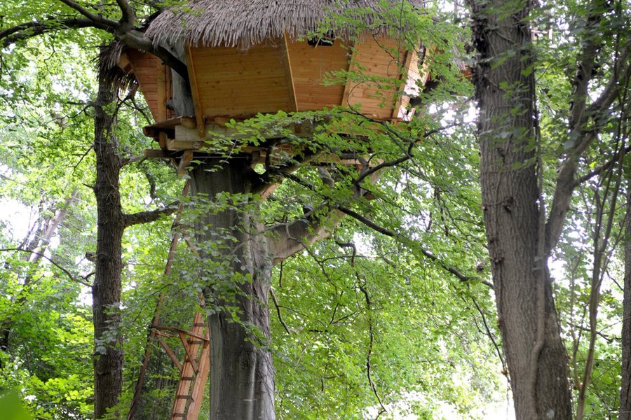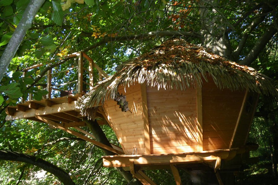 Cabane Vieux ChêneLa cabane du « Vieux Chêne » est nichée à 10m du sol dans le creux des branches du chêne.