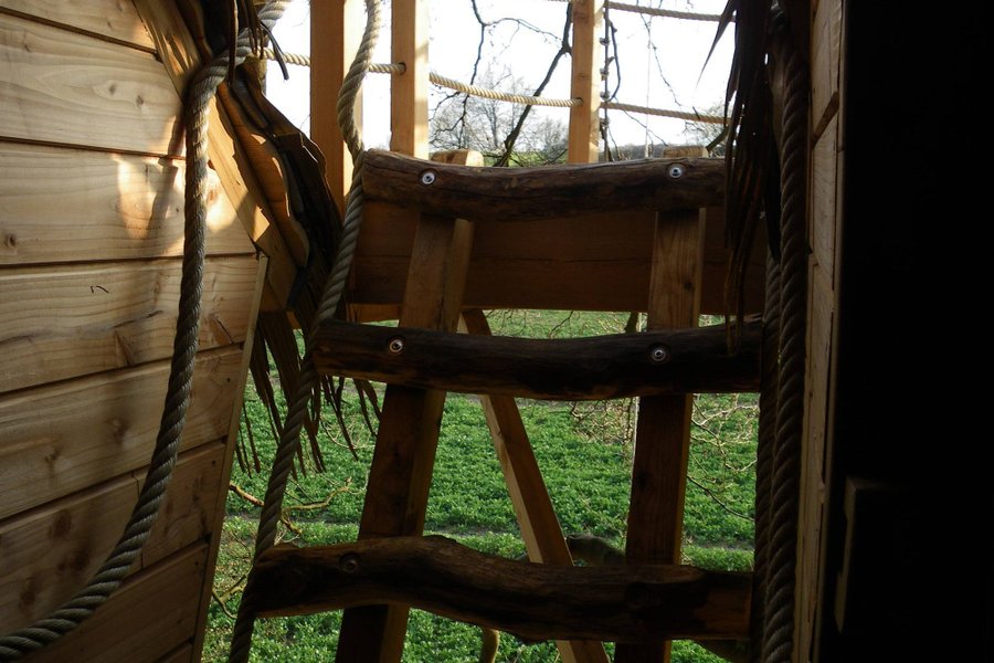 Cabane TerriersLa cabane « Terriers » est un nid douillet situé en lisière de forêt, dans un chêne isolé au dessus de terriers de blaireaux et de renards, orientée plein ouest et bénéficie d'une très belle vue sur les champs.