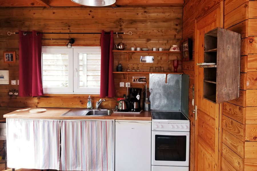 Blottie dans la verdure, vous y passerez un séjour au plus près de la Nature mais sans renoncer à un maximum de confort : grande pièce de vie avec lit de 14……