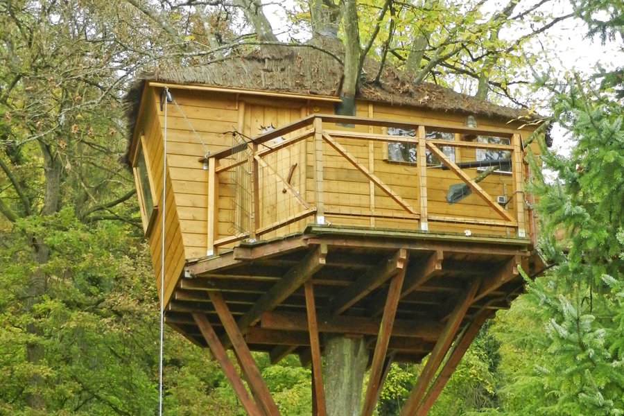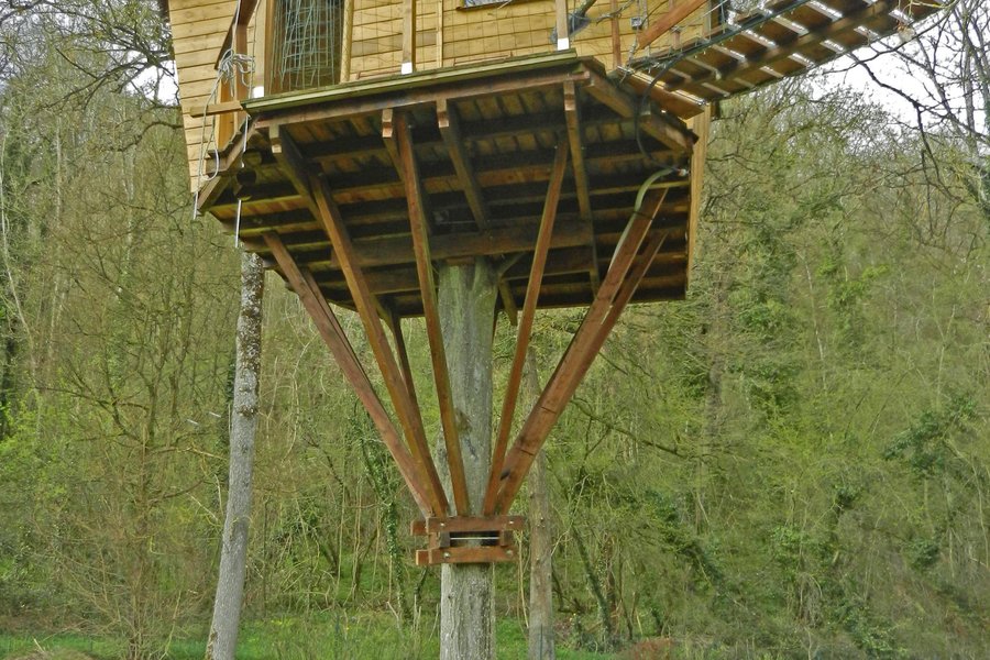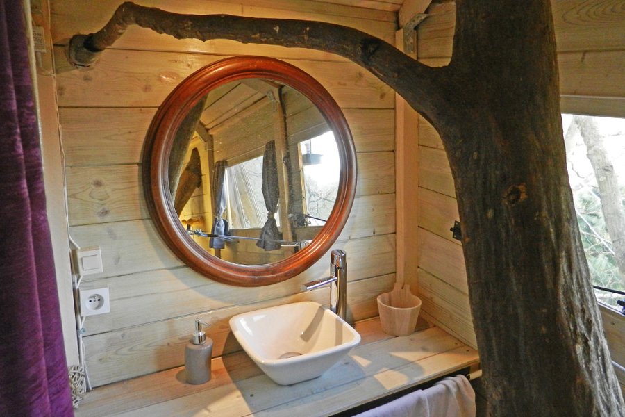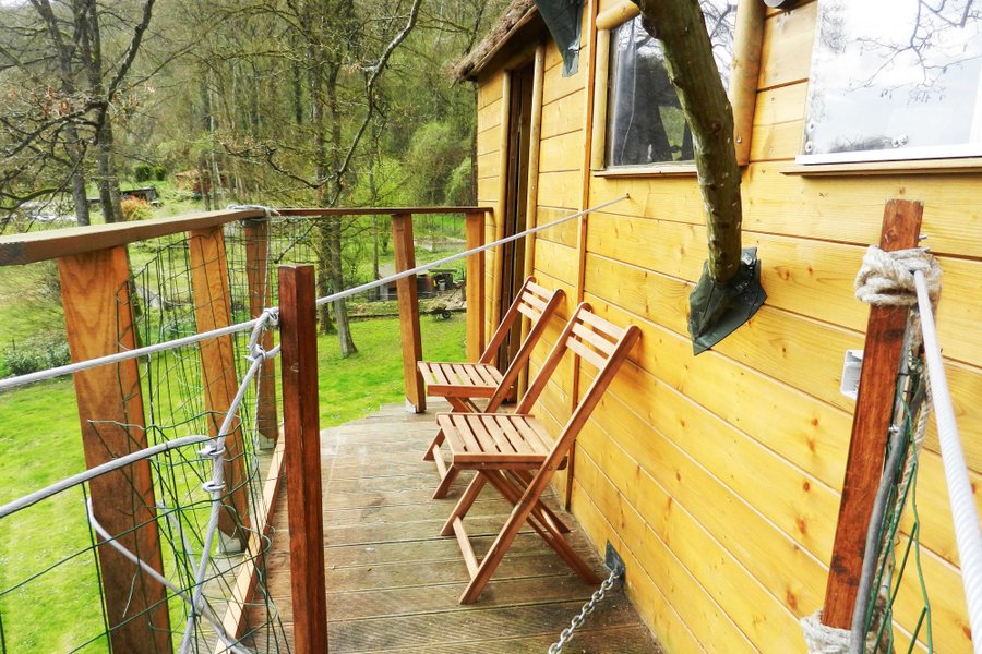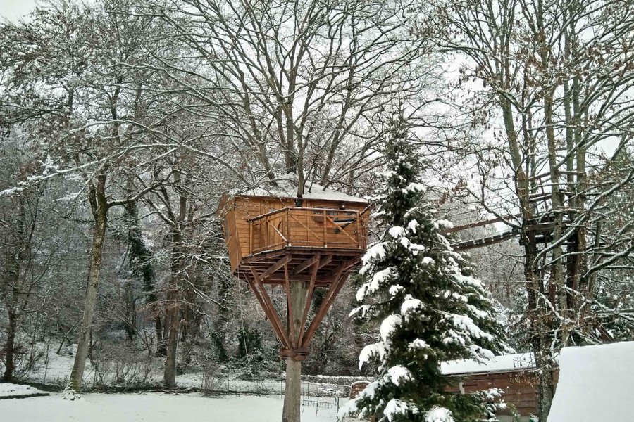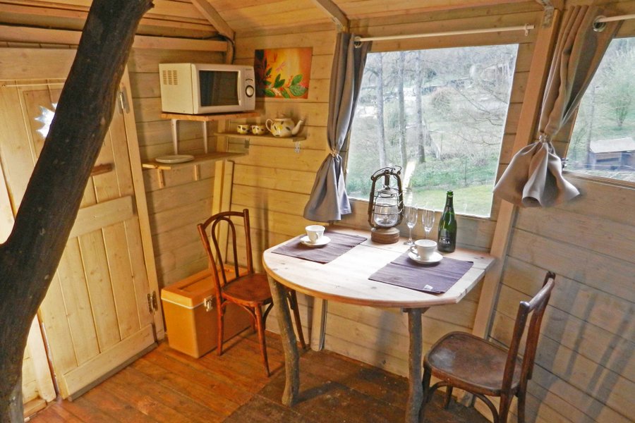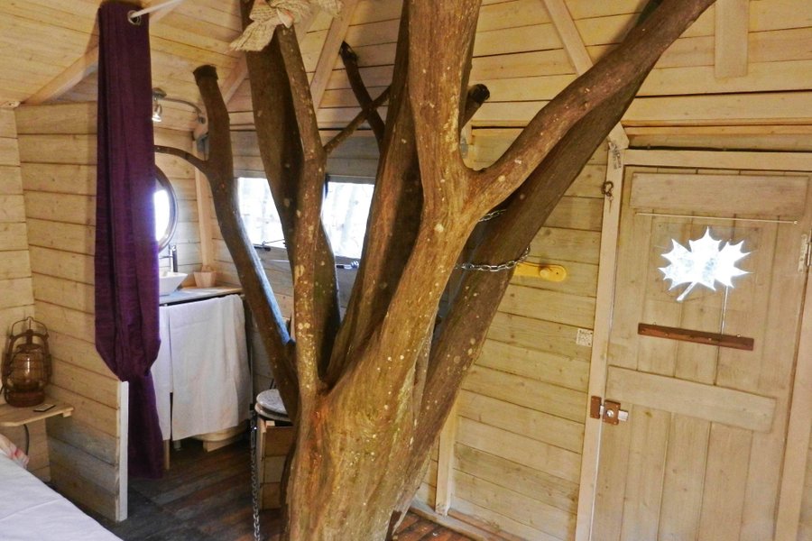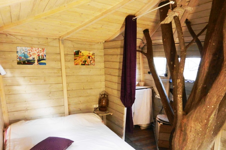Prenez de la hauteur dans la Cabane du Charme ! Perchés à 5 mètres, vous apprécierez son intérieur chaleureux et nature avec son arbre traversant !
