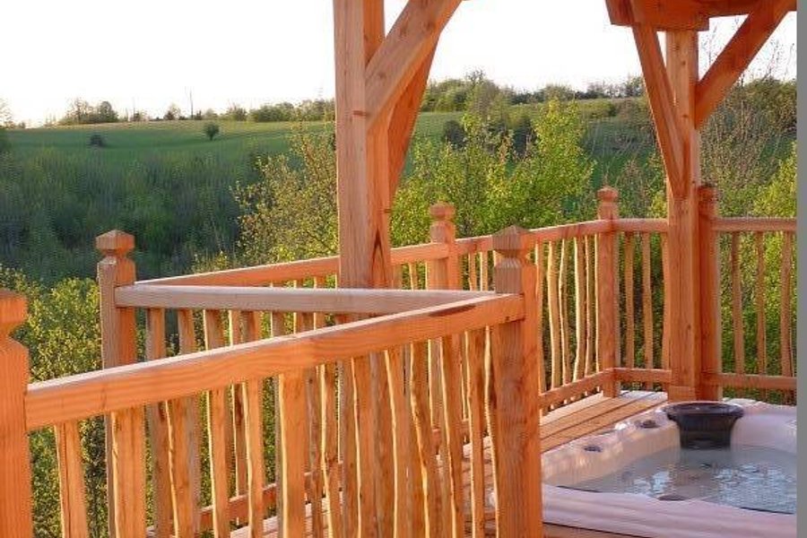 Vous pourrez depuis la terrasse, profitez d’un moment détente dans son spa privatif et admirer la nature environnante. Pour agrémenter votre séjour, la piscine et le jardin sont à votre dis……
