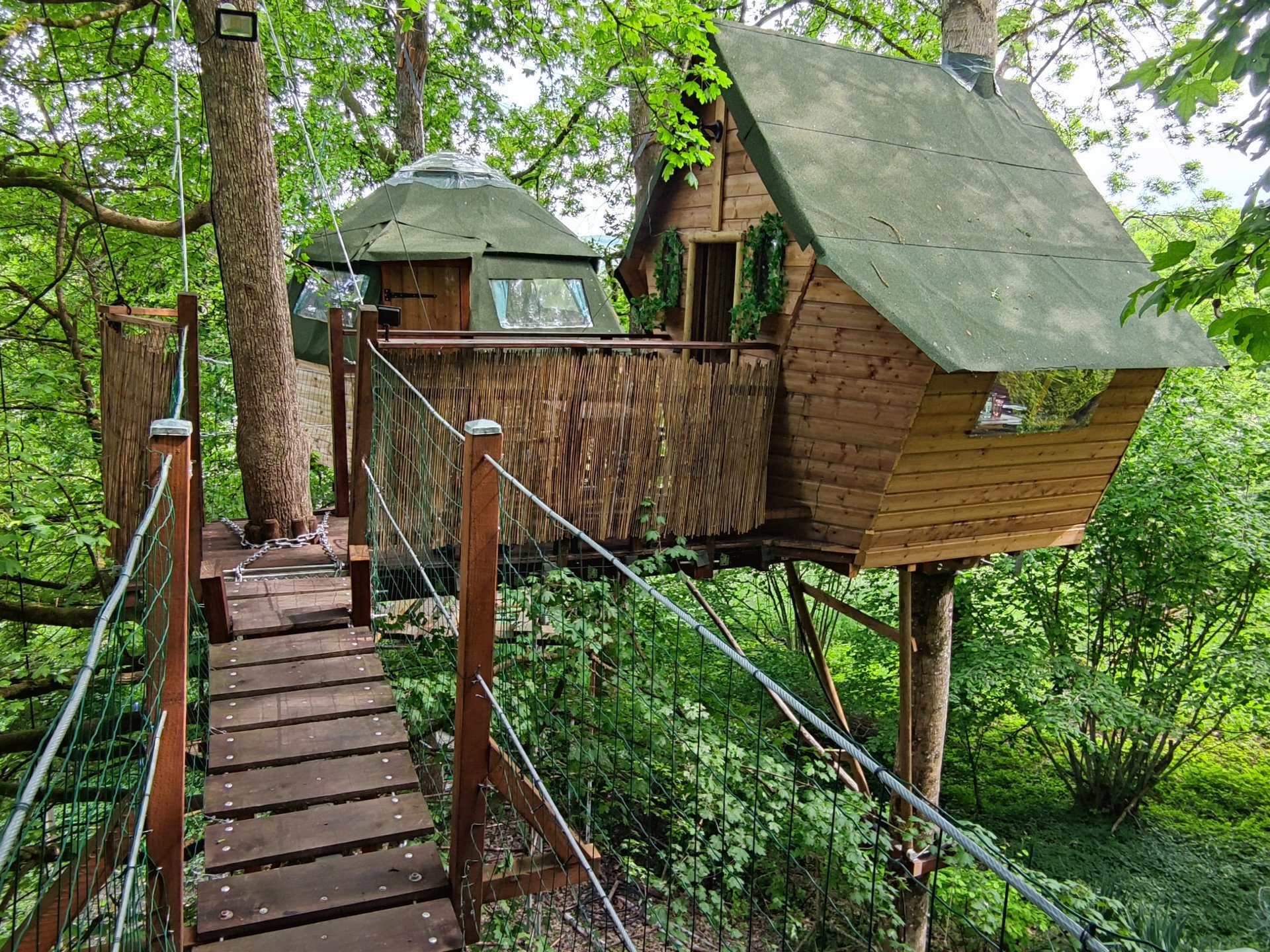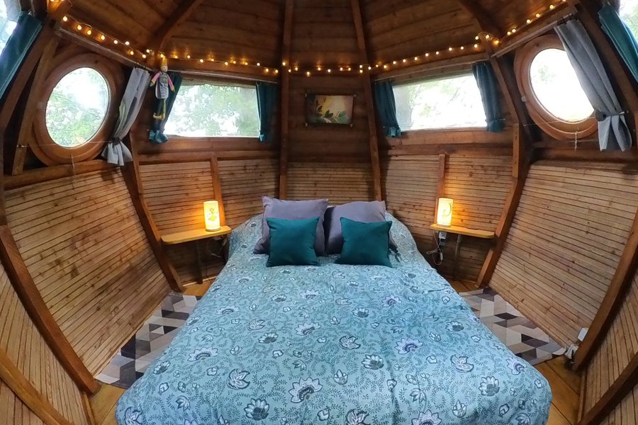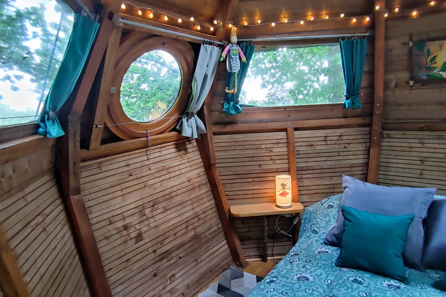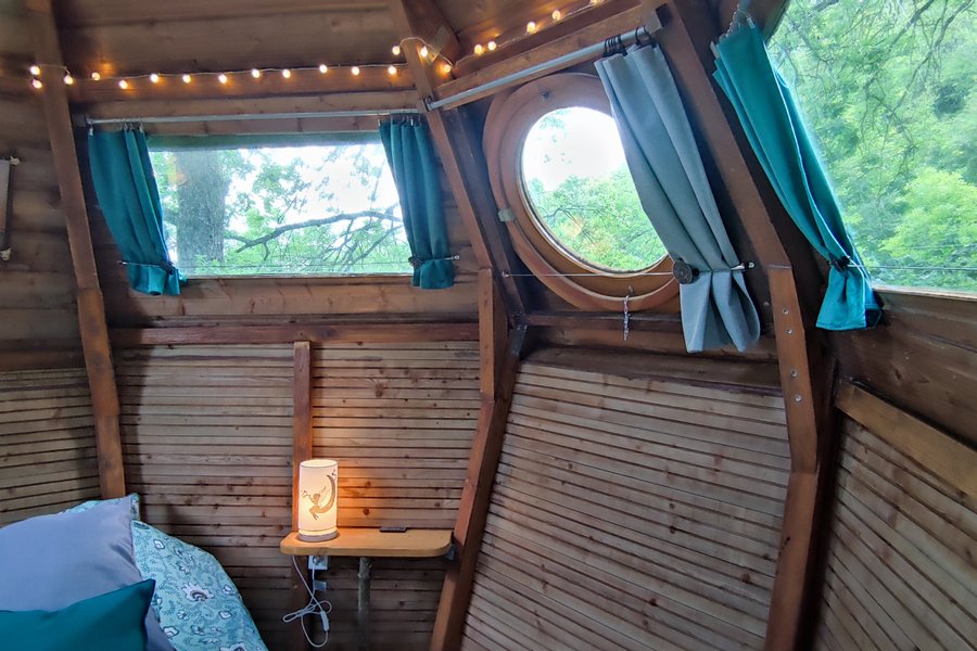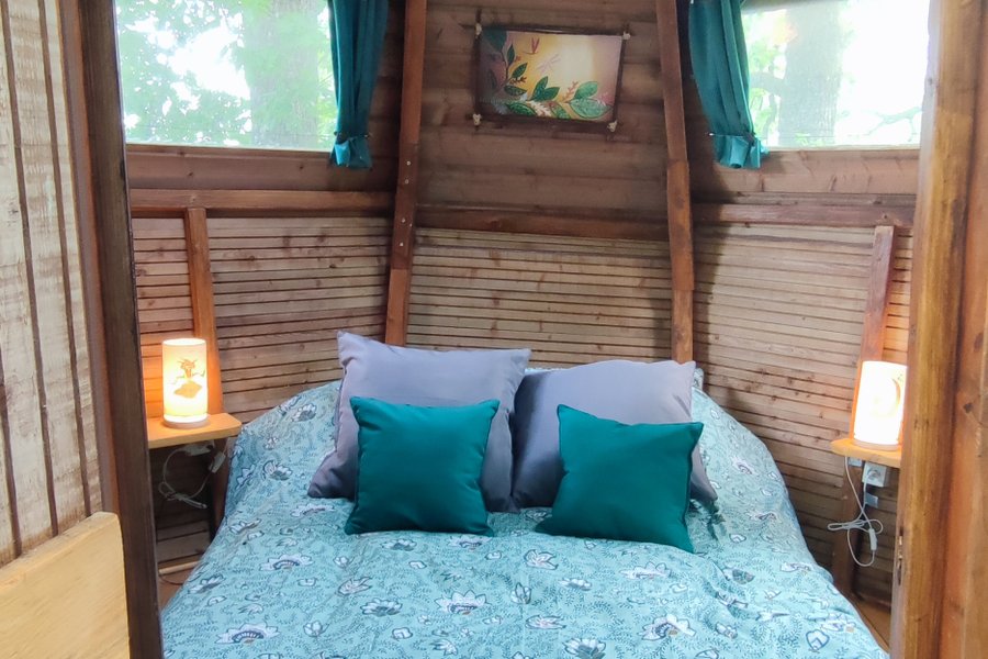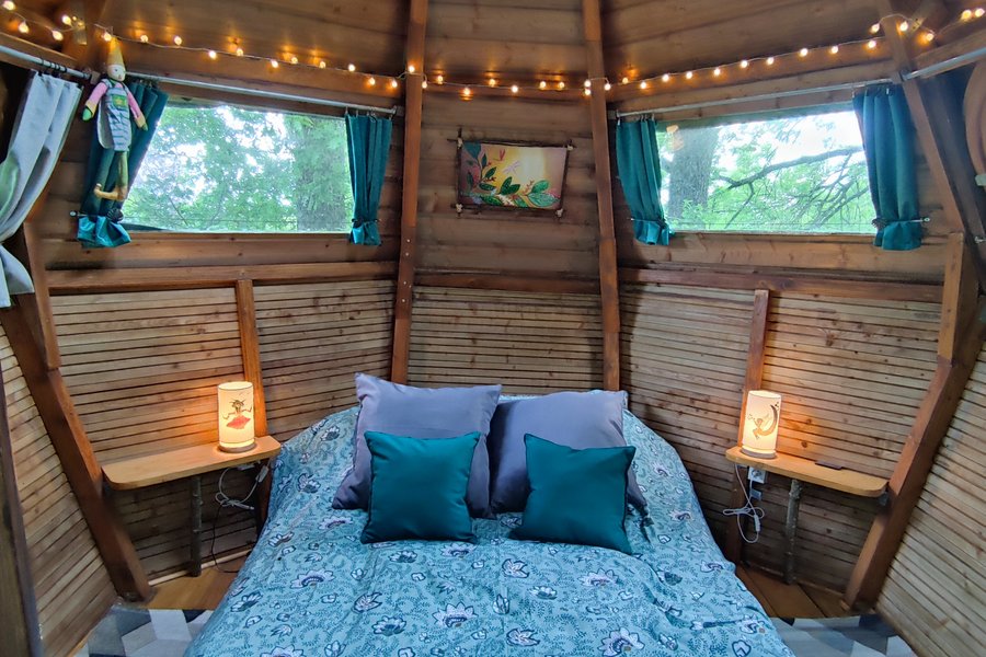Profitez d’un moment unique à deux et vivez un séjour insolite dans cette cabane perchée à 6 mètres de haut ! Empruntez l’escalier de meunier et découvrez un nid douillet et cosy qui vous attend au bout d’un pont suspendu. Vivez une immersion totale dans les arbres et appréciez ce moment……