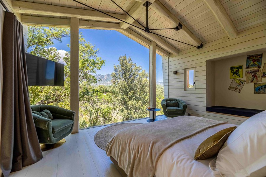 Nichée au cœur du maquis Corse, la cabane Pavo est une suite luxueuse avec une belle terrasse conçue pour les amoureux. Alliant nature et technologie, elle évoque un rêve d’enfance. Ce lieu envoûtant offre une expérience tournée vers le luxe et le bien-être. Profitez d’un……