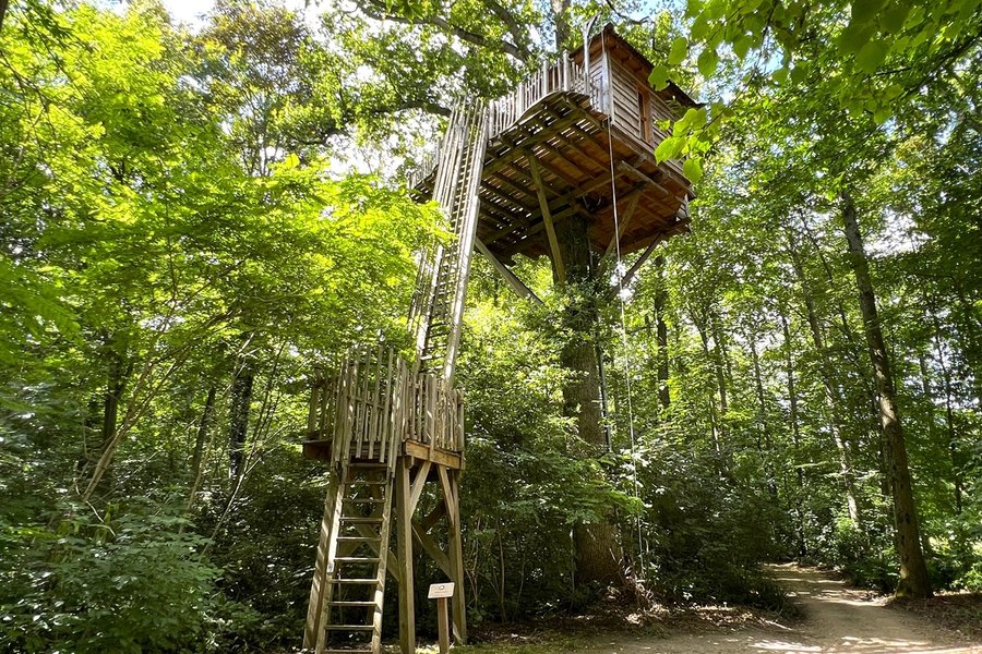 L’Imprenable, accessible par une double échelle, est perchée à 13 mètres du sol dans un des plus beaux chênes du domaine.