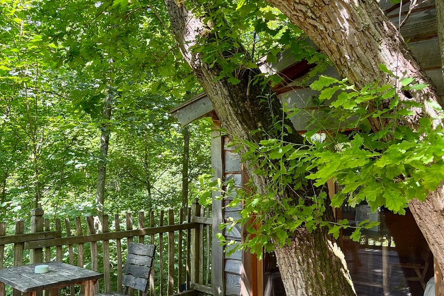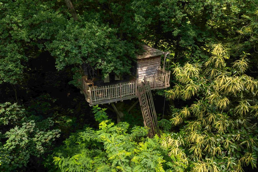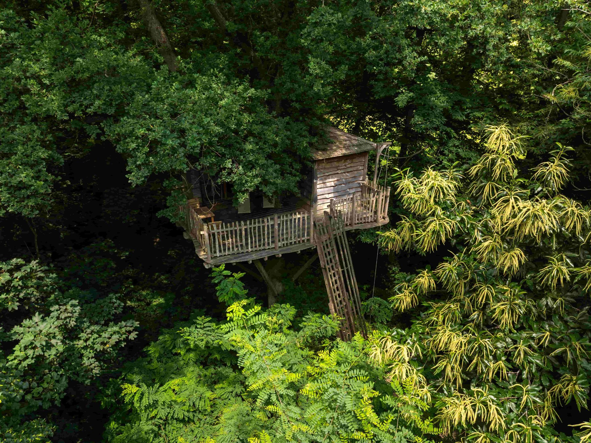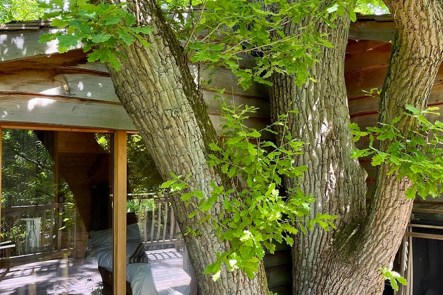 Perchée à 6 mètres de hauteur, dans les branches d'un chêne, la cabane Spa Cachette est faite pour accueillir 2 à 3 personnes !