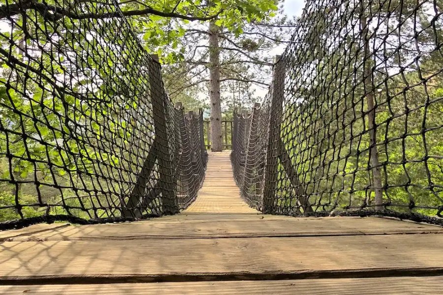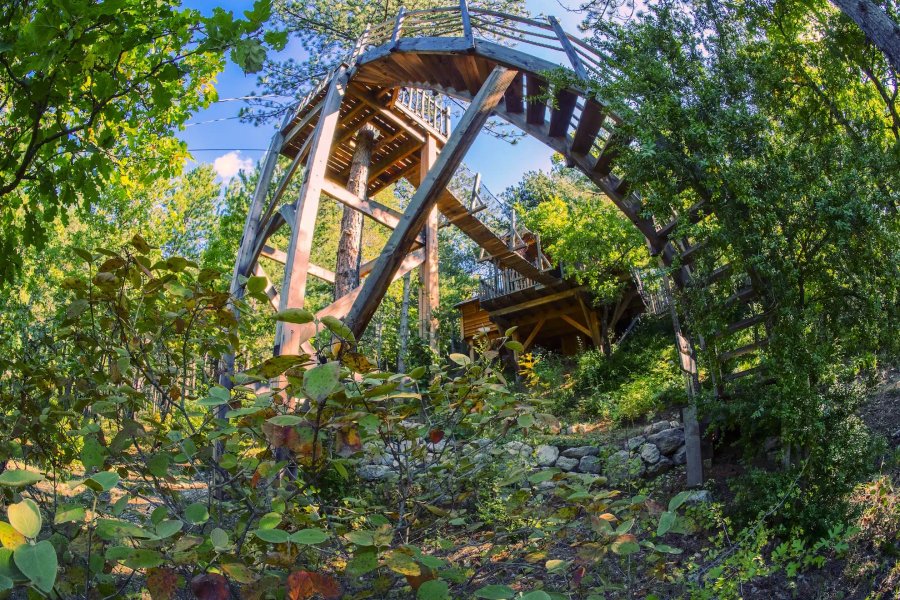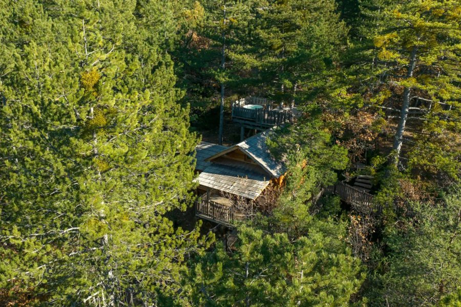 Cabane Épine Vinette – Une bulle perchée entre ciel et forêtPerchée à 6 mètres de hauteur, la cabane Épine Vinette se cache au cœur d’une pinède préservée, dans le domaine enchanteur des Cabanes du Pas de la Louve.