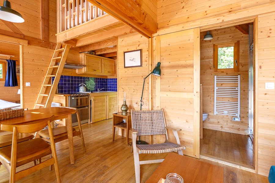 Perché au-dessus de l'eau, l'hébergement Goutte d'eau vous propose de vivre un séjour en famille unique, en pleine nature.