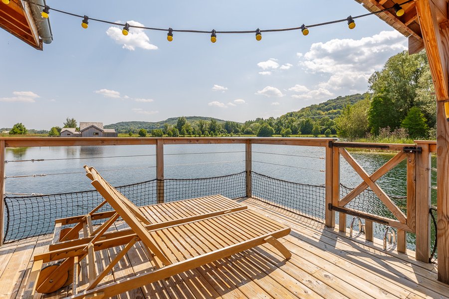 Perché au-dessus de l'eau, l'hébergement Goutte d'eau vous propose de vivre un séjour unique en famille , en pleine nature.
