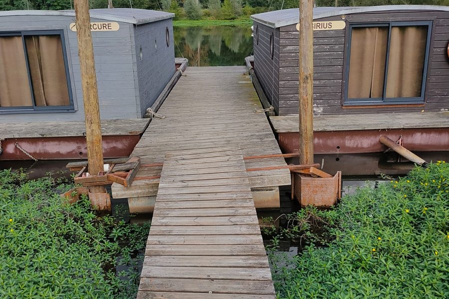Découvrez la Toue Accostée familiale pour une escapade inoubliable entre l’Auvergne et la Bourgogne. Perchée sur les eaux calmes d’un étang, cette habitation flottante allie le charme rustique du bois à des aménagements modernes, dont de vastes baies vitrées, pour une immersion totale dans la sé……