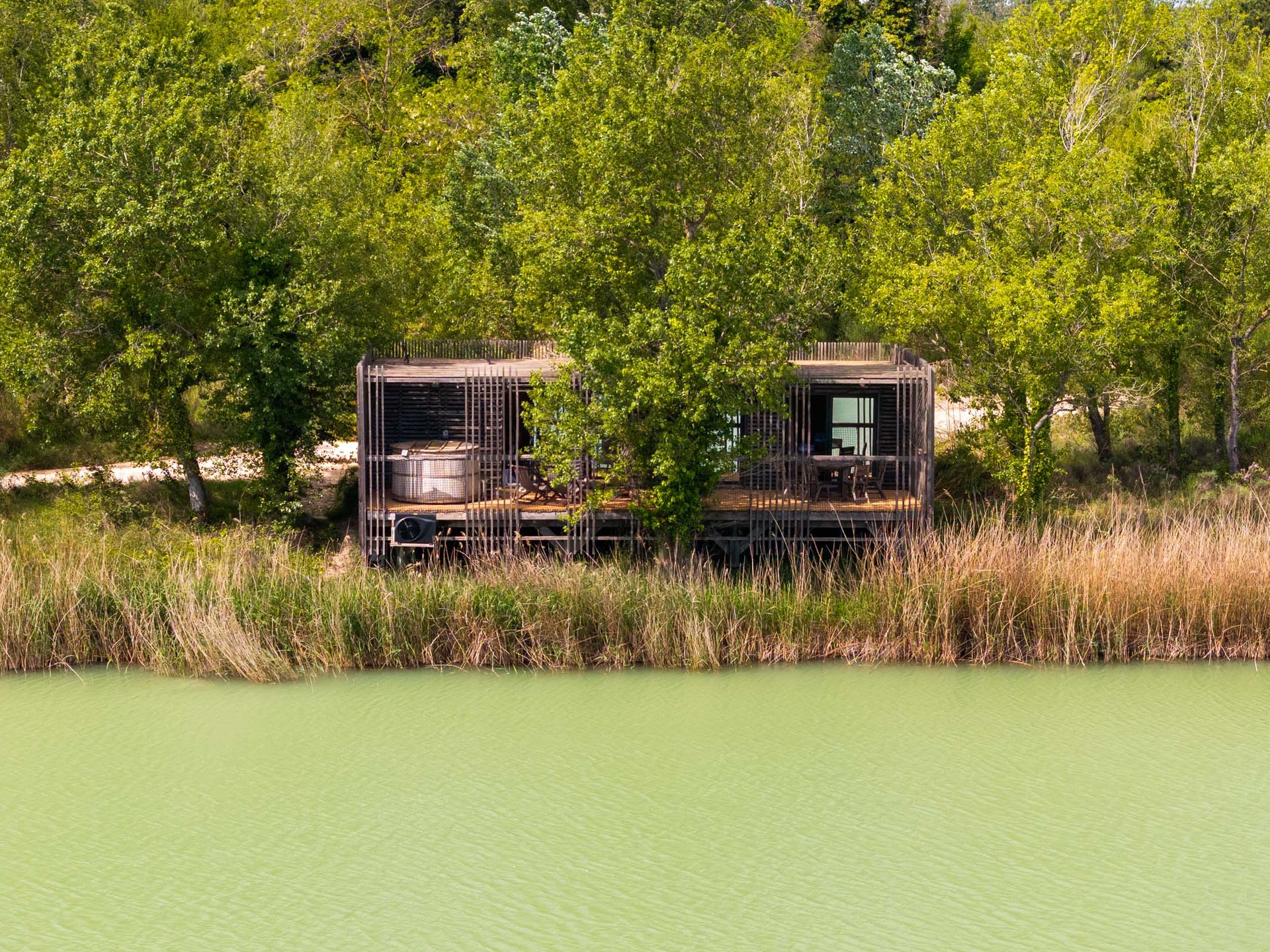 Vivez une expérience inédite et insolite dans cette cabane flottante tout confort avec bain nordique et vue sur l'étang de la Lionne !On aime : le bain nordique et sa vue sur l'étang bleu azur ! .