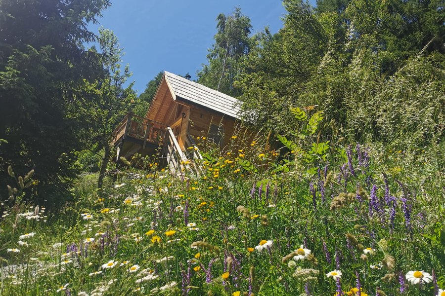 Perchée sur ses pilotis de 3m, la cabane « Le Jas du chamois » se trouve à l’orée de la forêt de Mélèzes et d’épicéa qui entoure le domaine. Derrière le pierrier qui délimite le domaine se trouve une prairie ou la faune locale passe régulièrement nous rendre visite.Avec un peu de chance, in……