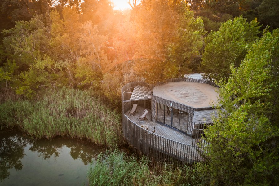 Vivez une expérience inédite et insolite dans cette cabane sur pilotis tout confort avec bain nordique et vue sur l'étang de la Lionne ! On aime : le bain nordique et la vue sur l'étang bleu azur.