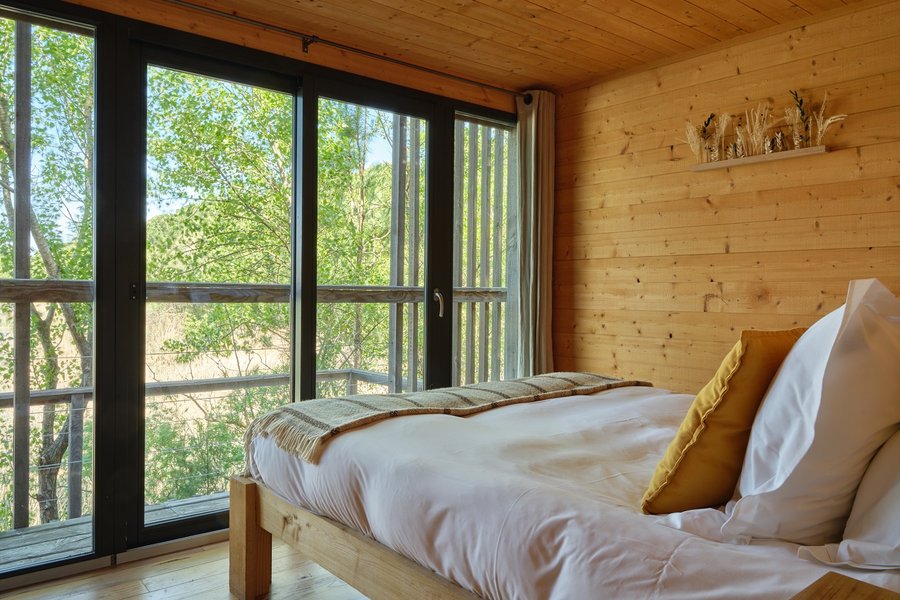 Vivez une expérience inédite et insolite dans cette cabane sur pilotis tout confort avec bain nordique et vue sur l'étang de la Lionne ! On aime : le bain nordique et la vue sur l'étang bleu azur.