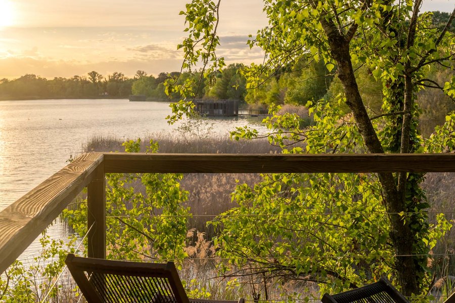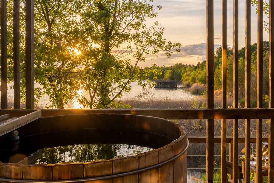 Laissez-vous bercer, grâce à un filet suspendu au dessus de l'eau, et profitez de la Cabane Spa Éternelle pour vivre un séjour d'exception.