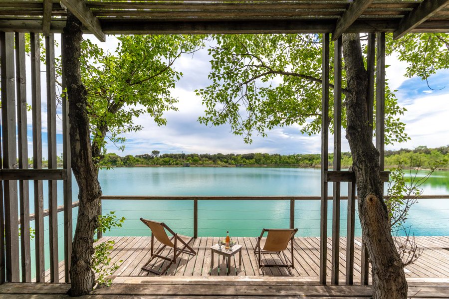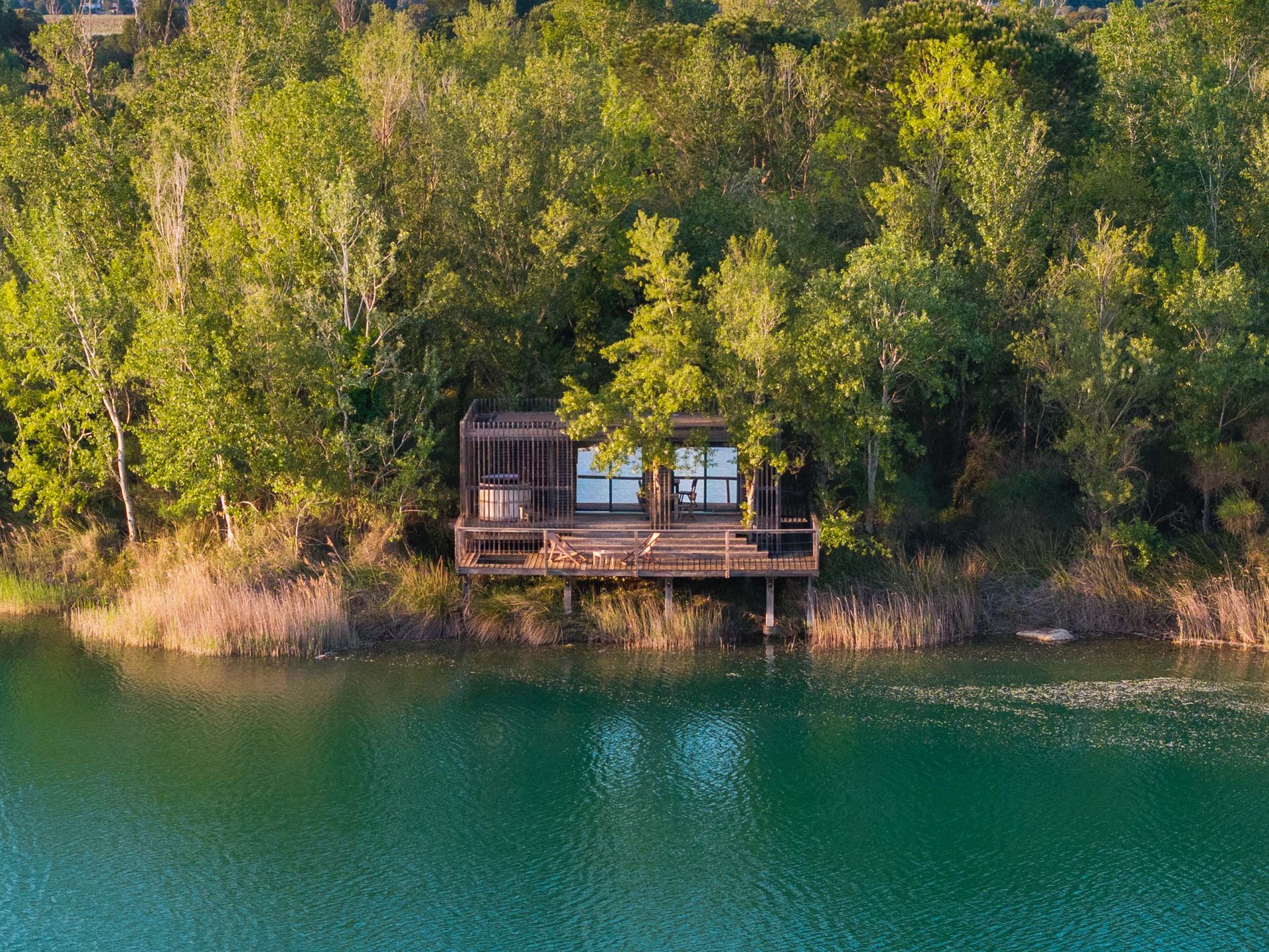Vivez une expérience inédite et insolite dans cette cabane sur pilotis tout confort avec bain nordique et vue sur l'étang de la Lionne ! On aime : le bain nordique et la vue sur l'étang bleu azur.