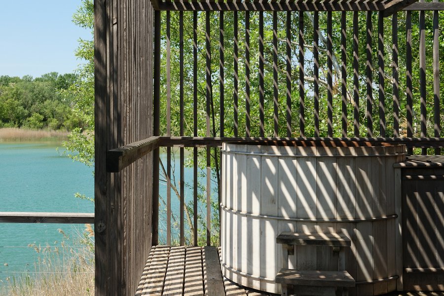Vivez une expérience inédite et insolite dans cette cabane flottante tout confort avec bain nordique et vue sur l'étang de la Lionne !On aime : le bain nordique et sa vue sur l'étang bleu azur ! .