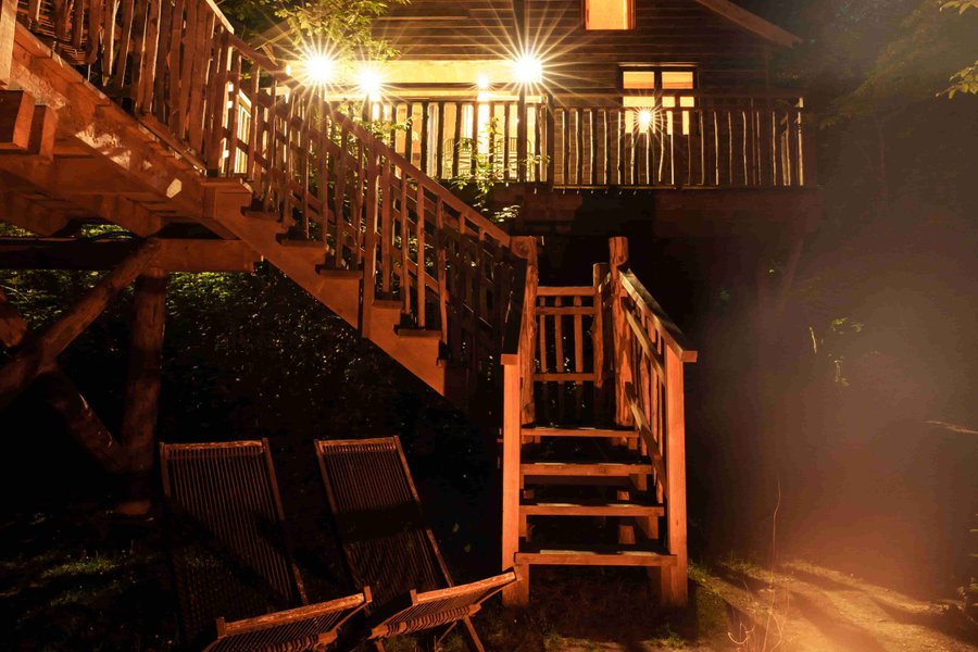 La jolie cabane Spa Ambre à l’architecture insolite vous fait la promesse d’un séjour romantique hors du temps.