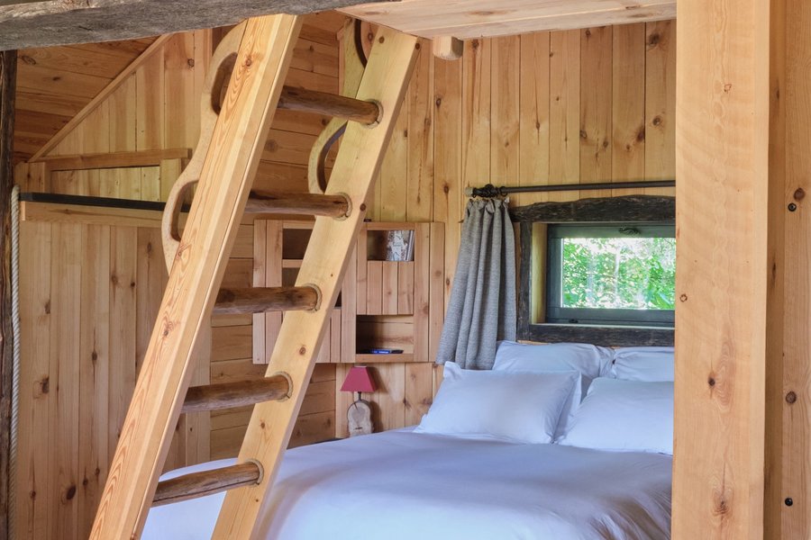 Oubliez l'école, le bureau ou la routine quotidienne et laissez libre cours à l'aventurier qui sommeille en vous !Cette cabane Spa École Buissonnière, accessible par un escalier en colimaçon, propose une chambre avec un lit double, une autre chambre avec 1 lit simple et 1 lit double (tail….
