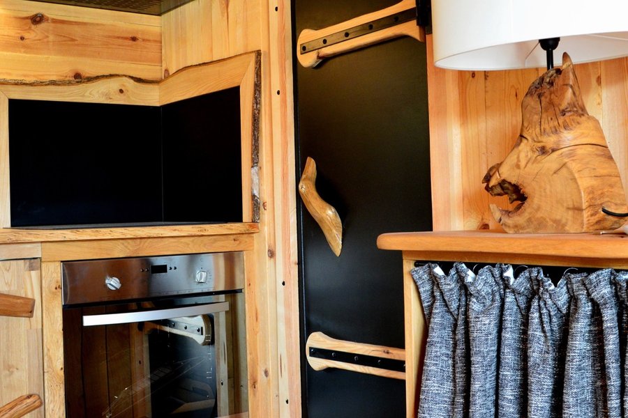 Séjournez dans cette cabane en forme de bûche pour un moment unique ! Divisée en trois parties, vous bénéficierez de tout le confort nécessaire avec une partie salon et cuisinette, une salle de bain, mais également une chambre avec lit king size offrant une vue imprenable….