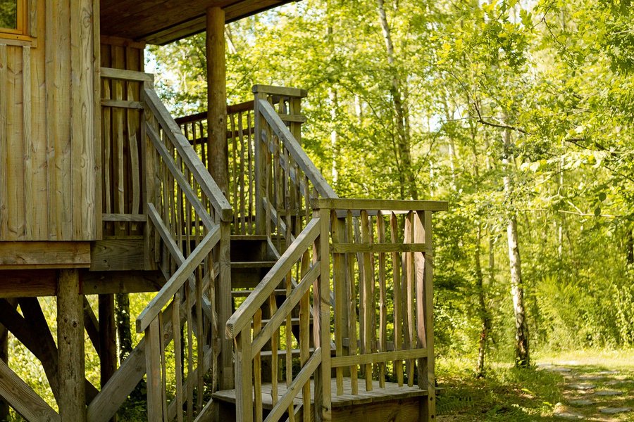 Venez séjourner dans la cabane Spa Belle Forêt, perchée sur des pilotis, pour une expérience immersive en pleine nature.