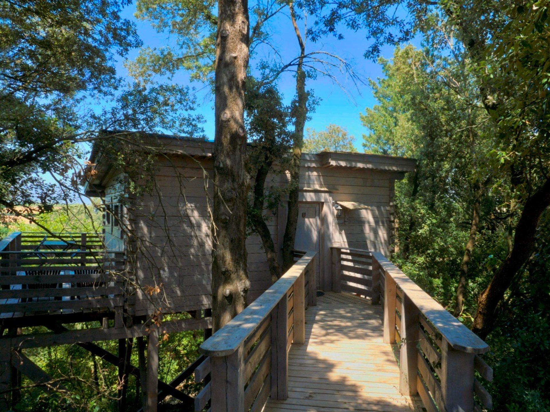 Dans le bois du domaine, au détour des sentiers, la cabane Fuste vous accueille en famille ou entre amis.