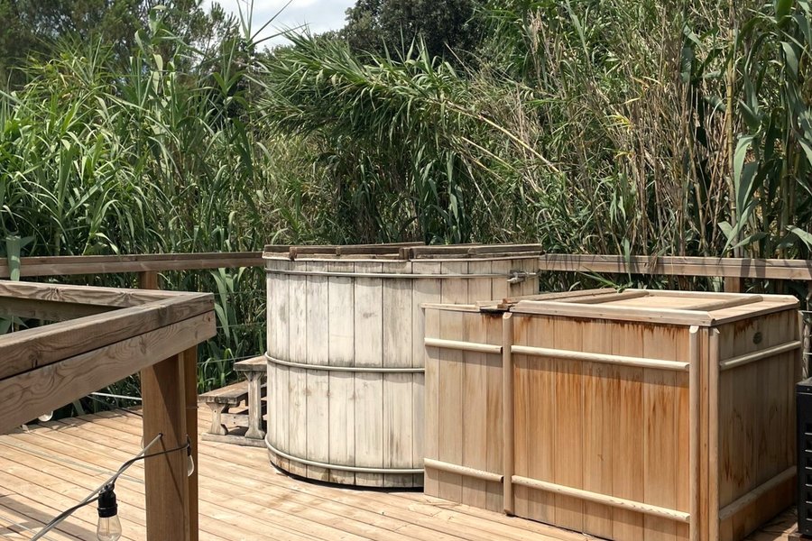 Vivez une expérience inédite et insolite dans cette cabane sur pilotis tout confort avec bain nordique et vue sur l'étang de la Lionne ! On aime : le bain nordique et la vue sur l'étang bleu azur.