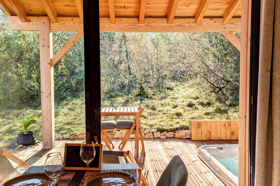 À moins de 15 minutes de Cahors, en plein cœur de la Vallée du Lot, ce lodge en bois vous invite à un séjour en harmonie avec la nature. Niché près d’un sous-bois, il allie confort et sérénité pour un véritable moment d’évasion.Idéal pour une escapade à deux, profitez de votre spa privati……