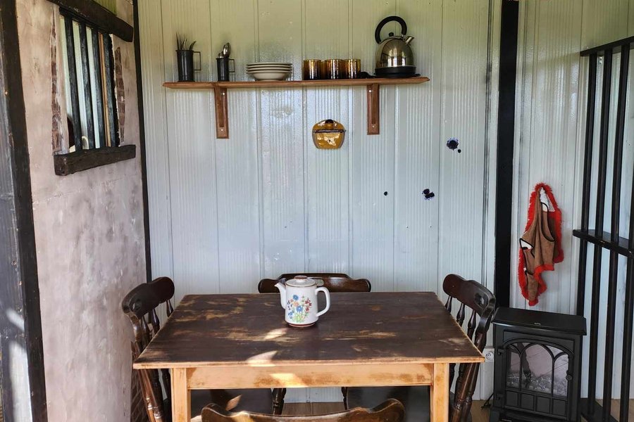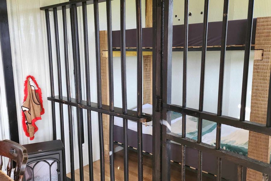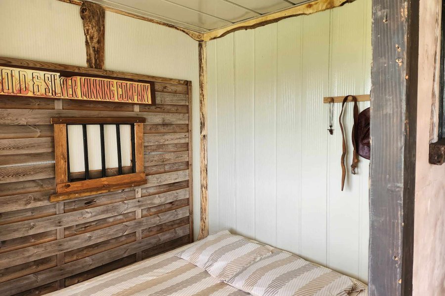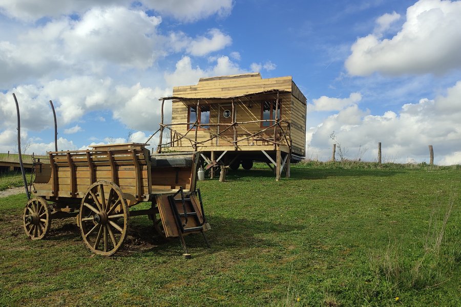 Ressourcez-vous dans ce logement inoubliable niché en pleine nature.Mettez vous dans la peau d’un shérif et profitez du lit double avec un œil attentif sur les prisonniers sur lits simples superposés !Son espace repas vous permettra de profiter en toute simplicité d’un petit repas ……