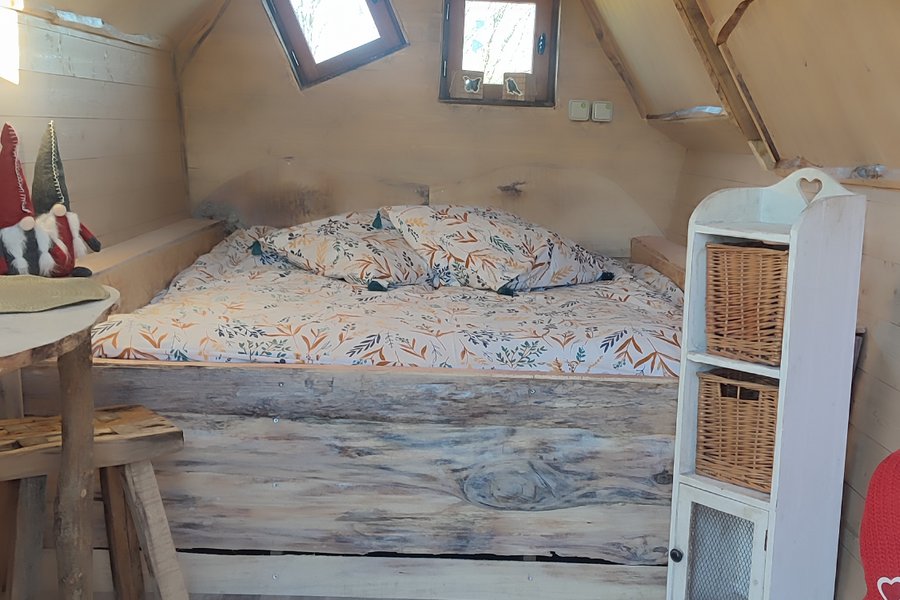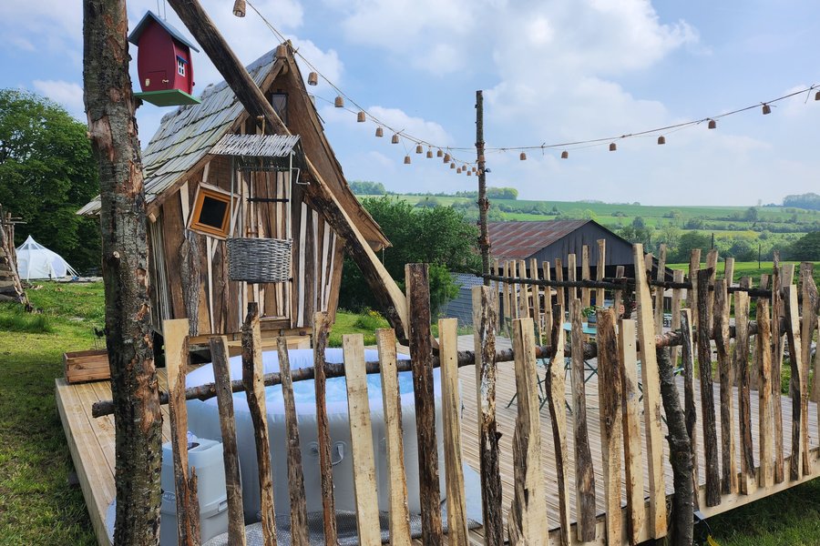 Entrez dans le monde des lutins et des fées avec cette cabane biscornue, chaleureuse et confortable qui rendra votre nuit magique.Toute en bois, isolée et chauffée, cette cabane illuminera votre soirée grâce à sa « cheminée » envoûtante.Son Spa privatif extérieur viendra enchanter vo……