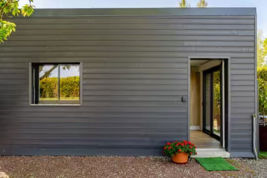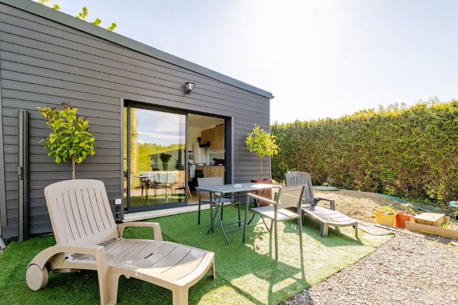 Cette cabane en bois, élégante et contemporaine, est équipée de tout le co……