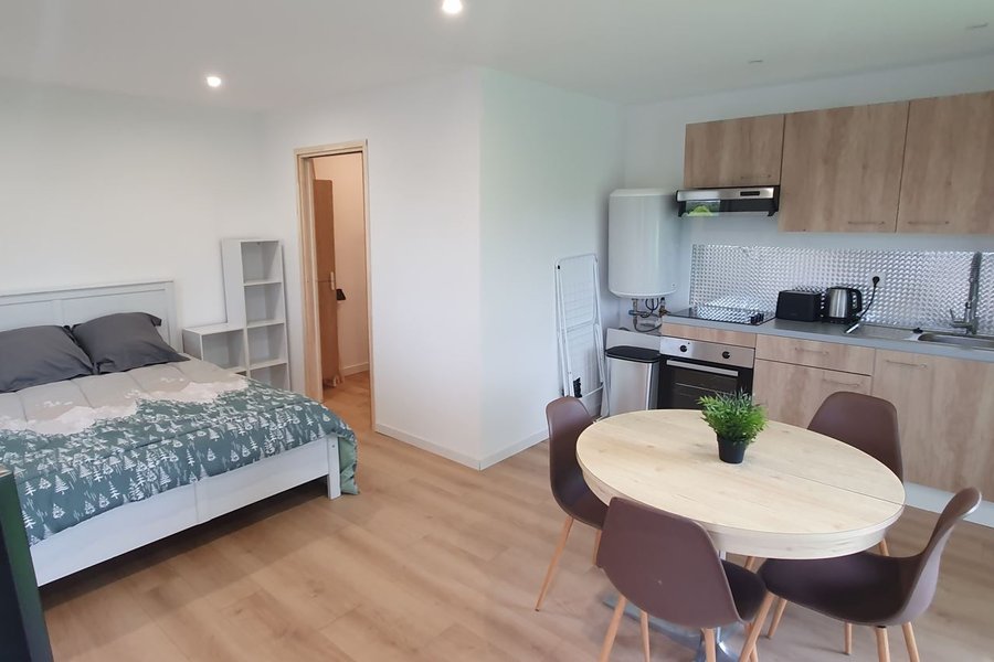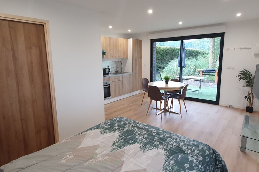 Évasion Nature au cœur de Saint-Georges-de-GréhaigneNiché au bord d’un paisible étang, à quelques minutes du Mont-Saint-Michel, ce havre de paix moderne vous invite à une escapade ressourçante.