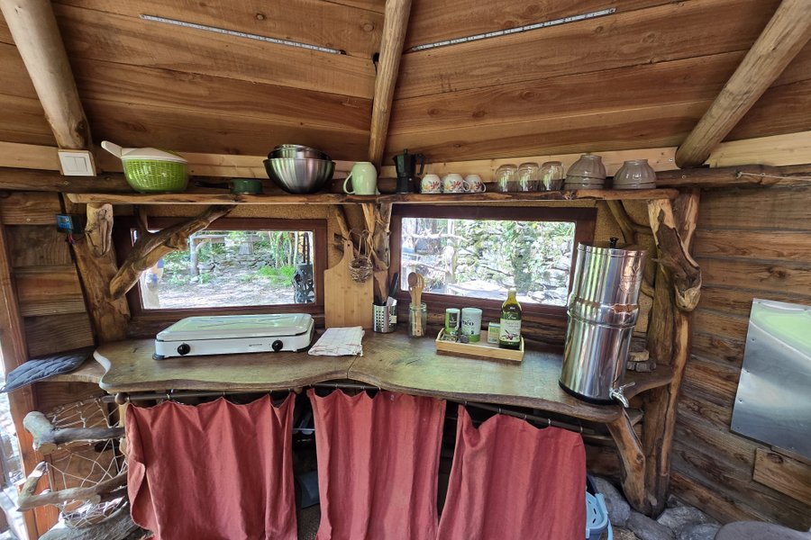 La petite cabane est située au milieu de la forêt, proche d’un ruisseau, pour un environnement calme et ressourçant !☘ Vous allez adorer l’immersion dans la nature qu’offre ce lieu.L’intérieur de la petite cabane comprend un lit double, un fauteuil, des rangements et un poêle à boi……
