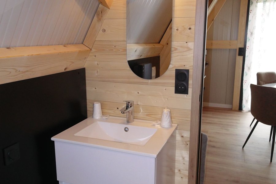 Le Tipi Françoise, d'une superficie totale d'environ 45 m², se déploie sur deux niveaux : un rez-de-chaussée et un premier étage.