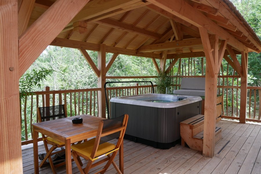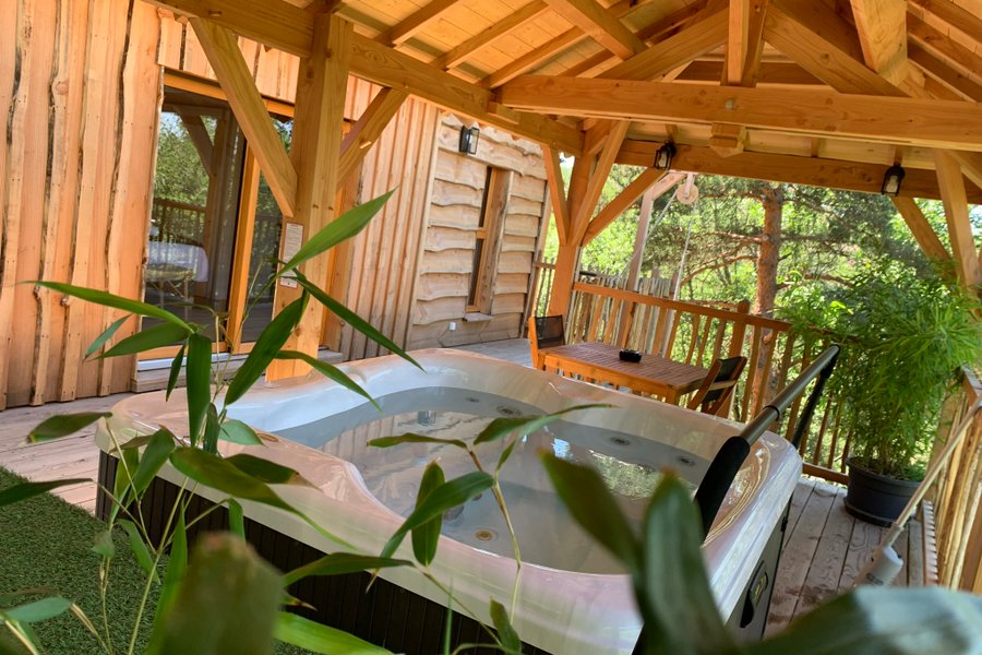 Inspirée par le château de Messilhac du XIIᵉ siècle situé dans le Cantal, cette cabane d’exception perchée à presque 6m de hauteur dans la canopée du bois du domaine fera le bonheur des couples.Vous pourrez profiter en amoureux d’un Spa/Jacuzzi…