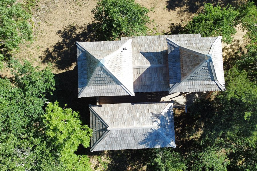 Cette cabane d’exception perchée à plus de 5m de hauteur à l’arrière est à 2,5 m coté terrasse a été dessinée par Vicky et Frank les gérants du domaine.