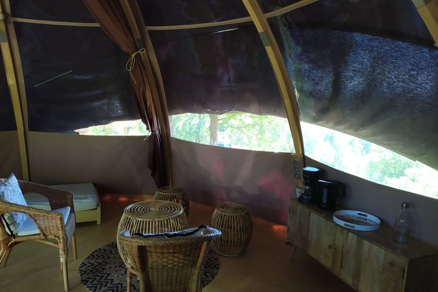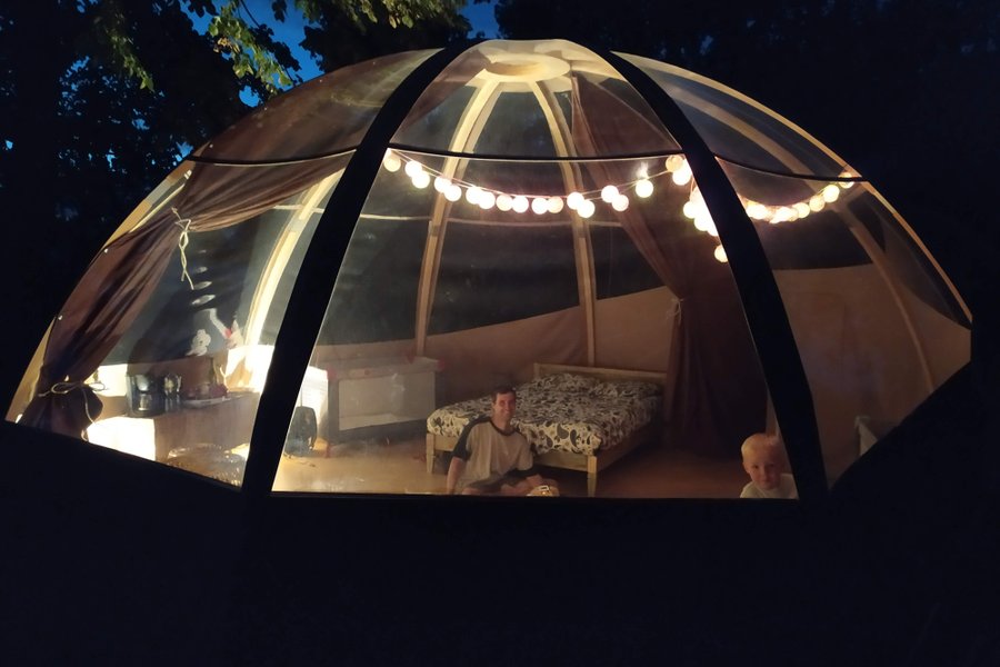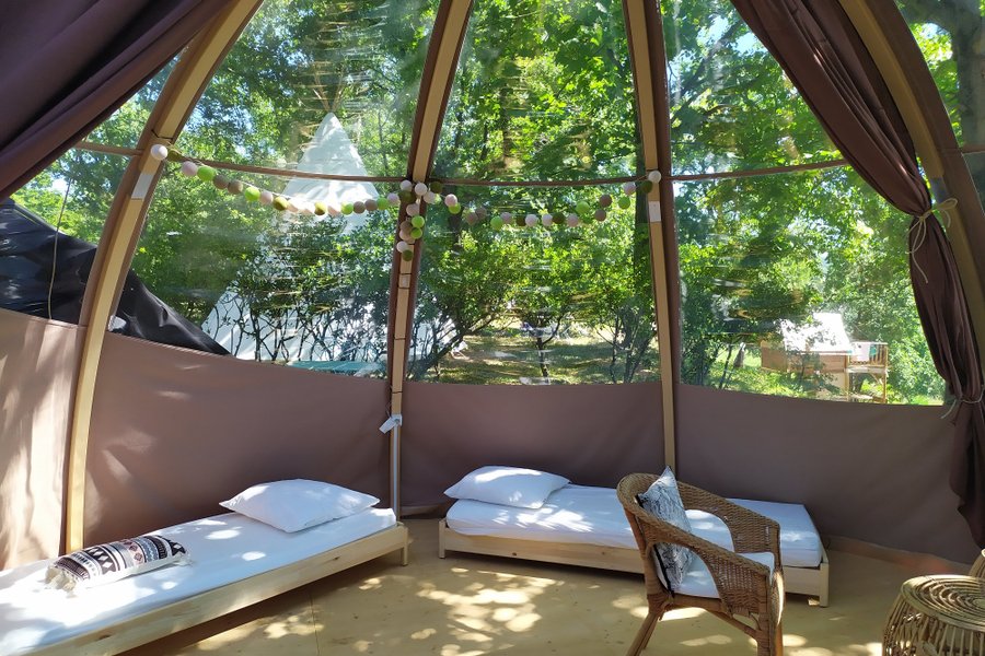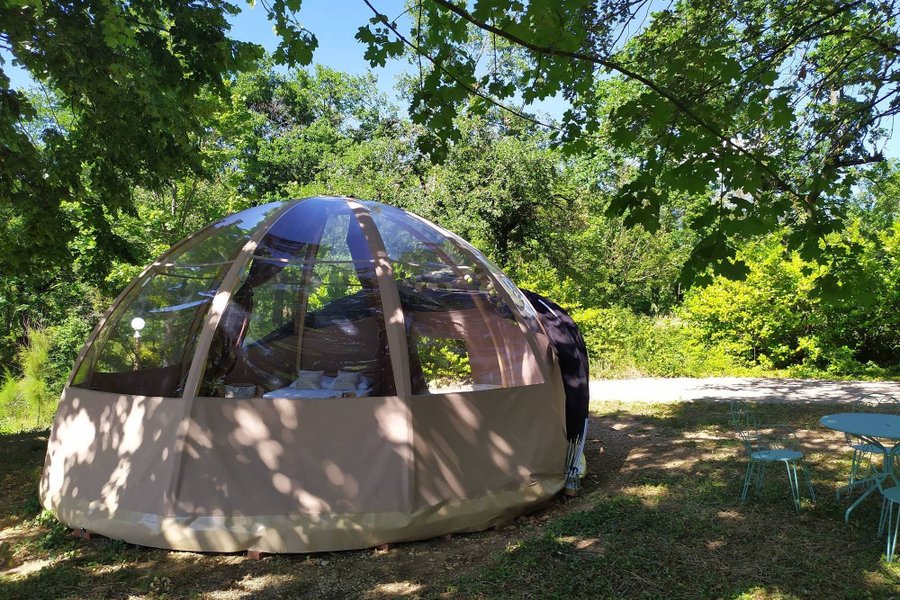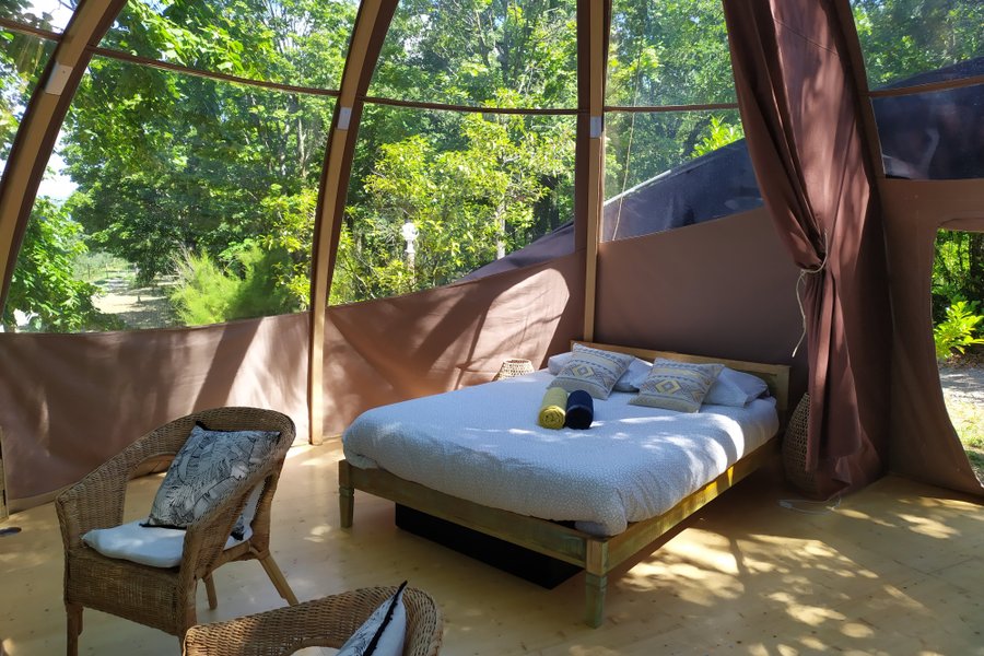 Imaginez-vous réveillant dans ce dôme géodésique élégant, niché délicatement dans un écrin de verdure.