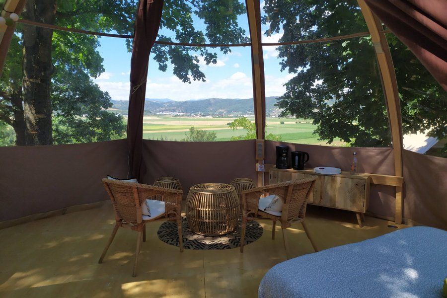 Ouvrez la tente sur tous ses côtés et profitez de la vue magnifique sur la Vallée du Rhône.